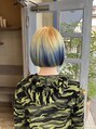 多毛の方でしたので、襟足は刈り上げしてワンレングスにカットしました。ブリーチして、毛先をブルージュにしてから鮮やかなブルーカラーでグラデーションを作りました。