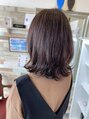 肩に当たる長さにレイヤーが入った(くびれミディアム)内巻きと違った印象にされたい方にオススメスタイルです^^