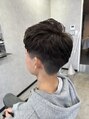 ツーブロック刈り上げのメンズアップバングスタイルにニュアンススパイラルパーマをかけました☆セット簡単に済ませたい方お任せ下さい◎今までヘアスタイルで満足した事無い方一度ご相談下さい♪必ずカッコよくさせて頂きます。メンズ/ブリーチ/眉毛/パーマ/
