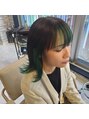インナーカラーに高発色のグリーンをいれたデザイン