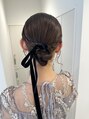 お呼ばれヘアセット タイト ローシニヨン ベロアリボン
