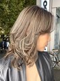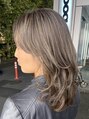 ミディアム伸ばしかけハイライトグレーベージュアッシュベージュ