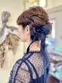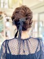 リボンアレンジのヘアセット。ゆるふわにまとめてあります。