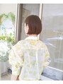 重ため丸みボブに、ヘアオイルをつけて耳かけしてこなれ感を。カラーはブルーアッシュ。