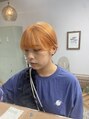 ブリーチを1回ベースを更にブリーチして明るめのオレンジを作りましたオレンジは比較的発色しやすいですが明るめは色の安定が難しいのでしっかりとベースを抜いてつくりましょう!
