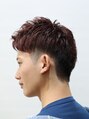 どこから見てもカッコいいクールなベリーショート。短い中に主張する躍動的な毛流れが光ります。カラーはブリーチしてからレッド系をオン。先細になるよう束感調整のカットを行い、ワックスで動かします。