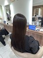 半年前に美髪矯正をさせて頂いたお客様。髪が伸びて根元のクセのせいでまとまらないのがお悩み。美髪矯正と髪質改善カラーでCMの様な黒髪に大変身。