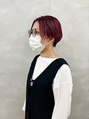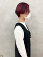 ダブルカラーでつくる濃いめモーブピンクカラーのセンターパートハンサムショートシンプルなスタイルにビビッドなモーブピンクで個性的なカラースタイルに。