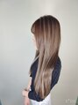 ベースの地毛にも多めのハイライトがあるのでそれに合わせたエクステ100gです。エクステのハイライトはベース色とミックスさせて付けるとより馴染みがよくなります。編み込みのエクステならではのテクニックで、シールでは厳しいですねー