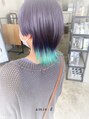 全体にケアブリーチで明るくさせて頂いて、インナーはグリーン、表面はパープルにさせて頂きました^ ^