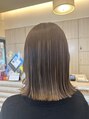 元々ベースにハイライトが入っていた状態から明るめのベージュをオンカラーして秋冬らしい柔らかい印象の色味を作ってみました◎ベースのプツっと切りっぱなしロブも可愛いです♪