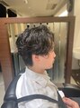 サイドバックはナチュラルに刈り上げたマッシュベースに、動きがしっかりでる様に緩めのツイストスパイラルパーマをかけています。