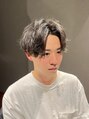 襟足は刈り上げずに厚めに残したツーブロック。やや前下がりのミディアムショートに緩めのメンズパーマで動きをつけました。柔らかなカールと束感をセンターパートでスタイリングしてセクシーな印象に!ゆるめパーマはビジネスシーンでも好感度抜群です!