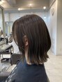 グレージュカラーのボブスタイルです!赤みやオレンジ色がおさまって透明感出ますね!