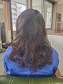 全体的に毛先が軽めのボブベースで、耳上の高さ辺りから前に向かってデジタルパーマをかけました。カラーリングは太陽の光に当たって明るく見えるくらいのアッシュブラウンで仕上げてあります。