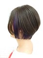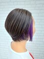 襟足短めで、丸みのある大人女性美髪ラウンドグラデーションボブスタイルです☆カラーリングでは、サイド内側に1ブリーチ後にプラチナパープル、トップにモーヴグレーを入れてうる艶な髪色に☆