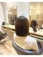 カットは切りっぱなしボブにしました。カラーは表面はブラウンで少し艶を出す為にラベンダーも入れました!インナーカラーも入れて、ミルクティーのグレーを少し強めの色にしました!