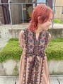伸ばし中だけど大きな変化をつけてサイドをばっさり ミディアムウルフスタイル。 カラーリングはブリーチ履歴を活かしてピンクオレンジ ワンメイクカラーではできない色味です。