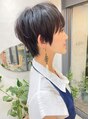 トップにボリュームを持たせるようにレイヤーを入れ、サイドバックをコンパクトにカットしたヘアスタイル。黒髪を活かしたショートはバームなどで束感を出す事でこなれます。360度どの角度からみても綺麗にカットいたします。