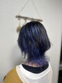 20代30代小顔ゆるふわショートウルフインナーカラーネイビー