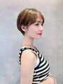 大人ショート×ナチュラルブリーチ透明感カラー。襟足の髪はやや短め、耳にかけれるサイドの髪、少し斜め流せる前髪、女性らしさ残るデザイン。ナチュラルブリーチをしてカラーをすると可愛さが増します!ワックスを揉み込むだけの簡単スタイリングです!