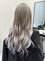 ベースは明るめのシルバーグレーに染めて、エクステはハイライトでペールラベンダー系のカラーで可愛くコントラスト仕上げてます!