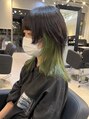 △インナーカラーグリーンウルフカットレイヤーカット姫カット/ホットペッパービューティー