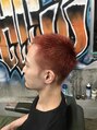 ベリーショートのスタイルにブリーチとレッド系のカラーを合わせたスタイル。