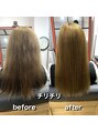 美髪ストレート後のビフォーアフターになります。アフターの写真は手で乾かした仕上がりです☆