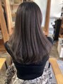 くすみベージュで柔らかさと温かみのある仕上がりに。根元は白髪も染まるようにしています!5ステップトリートメントで毛先までツヤツヤです!