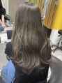 32mmのコテでサラッと外巻きにして、顔まわりはカーテンバングで外国人風を演出してます!透明感のあるベージュカラーに是非!