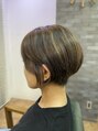 前下がりショートブリーチのメッシュにアッシュをのせています