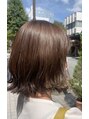 暗めのグレージュカラーで大人っぽく。外ハネのアレンジで、軽やかに可愛く!