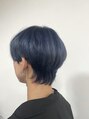 - (カット・マッシュ・マッシュウルフ・韓国ヘア・ダブルカラー・ブルー・シルバーに抜けるブルー)