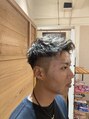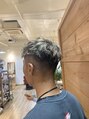 カットはツーブロックと刈り上げでスッキリした感じをだし長さを残している所はパーマでしっかり動きを出します!メッシュとも相性が良いのでメッシュ&パーマもオススメしています