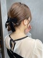 明るめのアッシュカラーと抑えめにまとめたスタイルです。ベロアのリボンが秋らしくて可愛いです!^^