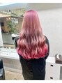 ピンク×ピンクの組み合わせ。今回はピンクラベンダーと原色系のピンクを組み合わせて、裾カラーにしました○ピンクカラーはピンクシャンプーで継続しやすいのと、ラベンダーを少し混ぜると変な残留もないのでおすすめカラーです○