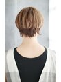 全体的にふんわりしたショートスタイルは毛先の外ハネが動きがでて女性に人気のスタイルです。ハイトーンカラーが全体的に柔らかさをだします。