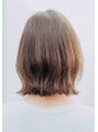 くびれを作ったミディアムスタイル。前髪を広めに作って、顔周りにレイヤーを入れて明るい印象にしました。くびれの位置をアゴのラインに合わせることにより、丸みを出しつつ、すっきりシャープになります。