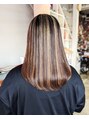 オンカラーはカラーシャンプーのみ。ベースは地毛のまま、ブリーチでハイライトをもりもりたくさん仕込みました♪