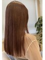 過去にブリーチを繰り返しているハイダメージ毛ですが、全体を暗くしたことにより自然なお色になりました。カットは毛量調整とカットラインをまっすぐに揃え、トリートメントでしっかり潤いを与えることによりダメージヘアに見せないサラツヤスタイルです