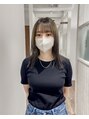 切りっぱなしミディアムスタイルに、顔まわりを包むようなレイヤーを入れてますカラーはブリーチをしてグレージュカラー