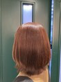 ソフトウルフボブスタイルにカットし、イルミナカラーでオレンジベージュに染めました。髪質改善カシミヤトリートメントでサラサラに仕上りましたよ!