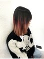 ブリーチメニューにWカラー応用トリプルグラ。カットは切りっぱなしボブに長めVバング。厚みを出し過ぎない様に質感と配色のボカシを綺麗に魅せてます。