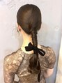 表面をクロスさせてタイトクールなデザインです。リボンの結び方にもこだわっております。#銀座ヘアセット#銀座サロン#ヘアセットサロン#セットサロン#東京#ヘアアレンジ#結婚式#アレンジ#おしゃれヘア#ポニーテール#ハーフアップ#ダウンアレンジ#編み下ろし