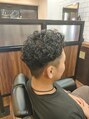 まわりをスッキリと刈り上げた強めのパーマスタイルです!