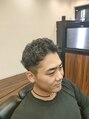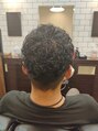 まわりをスッキリと刈り上げた強めのパーマスタイルです!