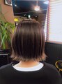 コンパクトなボブで襟足はスッキリ短く、サイドは前下がりになっているので、耳かけやハーフアップも可能です。
