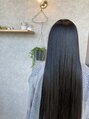 根本の伸びた部分だけの縮毛矯正(20センチほど)ですが、毛先との境目が目立たないようにアイロンの当て方を工夫しています。強めのクセでもほぼ問題なく綺麗に伸び、ツヤも出ますが、ブリーチ毛やダメージのある方は要相談させていただきます。