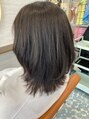 スタイリングが楽な肩越しの外ハネレイヤーに!カラーはブルーアッシュで明るさと透明感を!